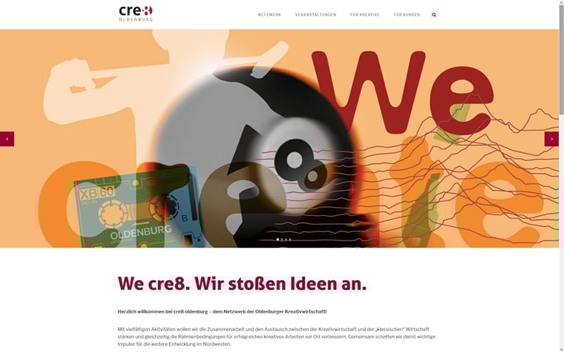 Webdesign Relaunch www.cre8oldenburg.de, Konzeption und Umsetzung